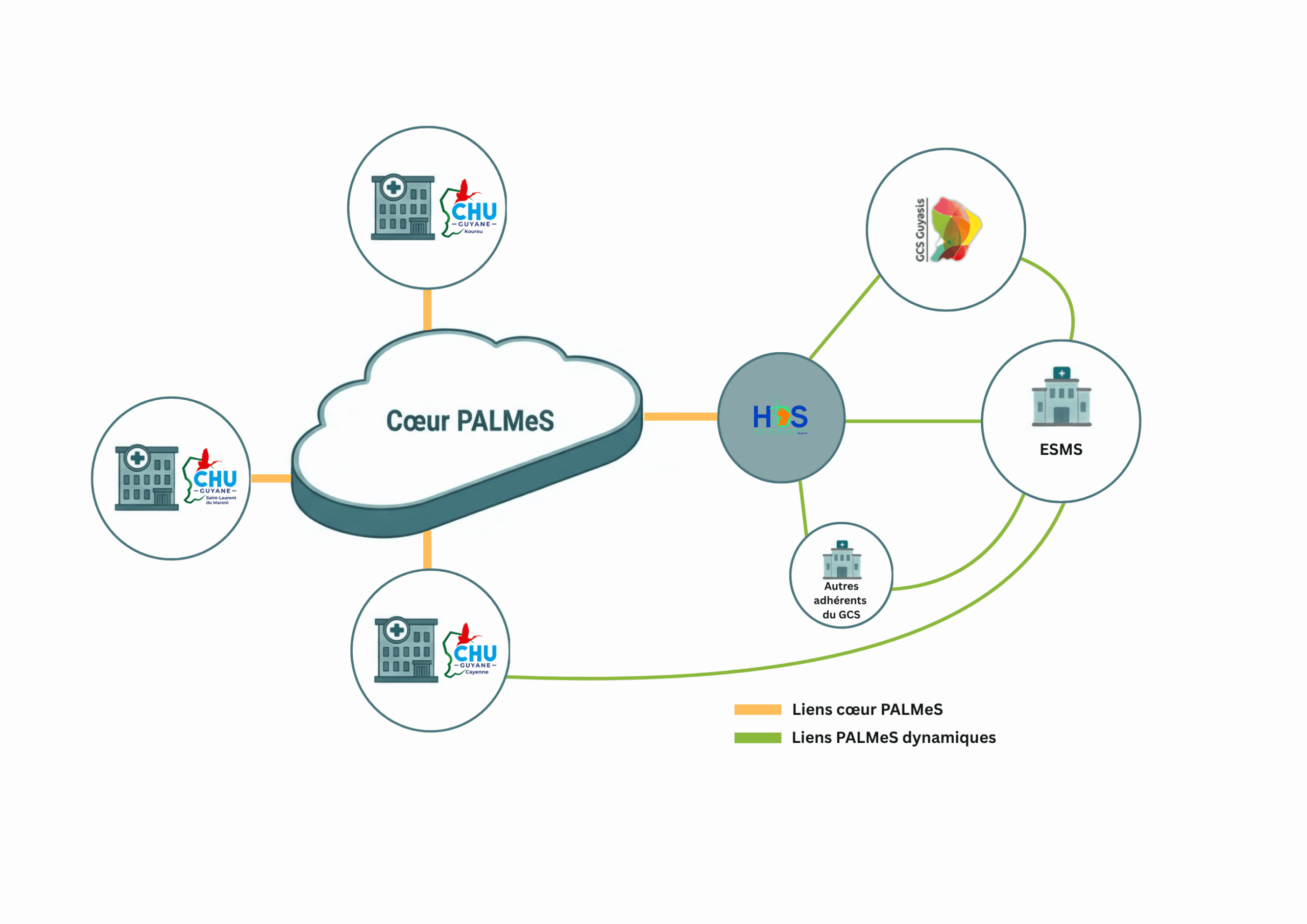 PALMeS (Plateforme d’Accès et de Liaisons pour une Modernisation de la e-Santé) est un réseau haut débit sécurisé mis à disposition des adhérents du GCS Guyasis.